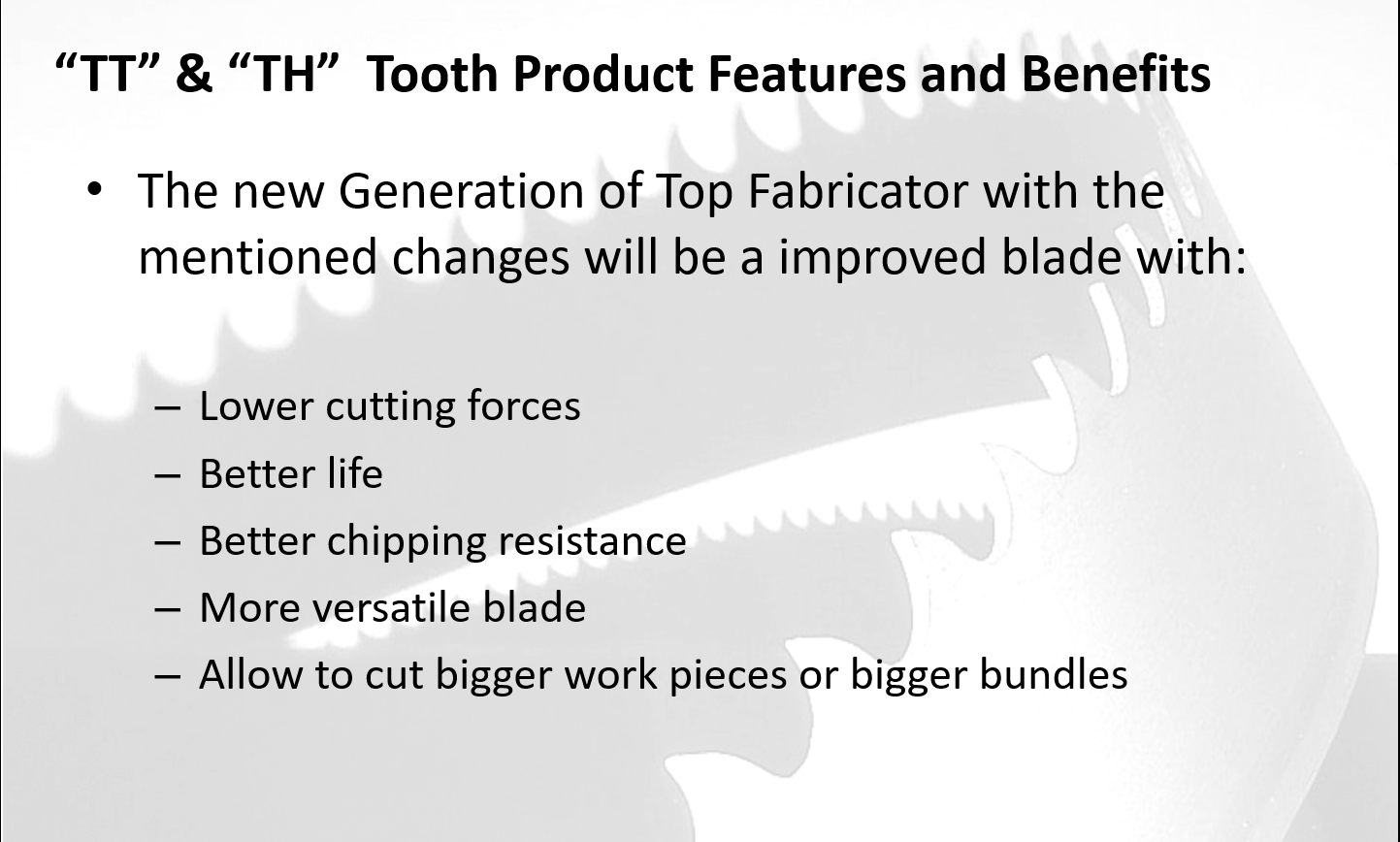 Special tooth design to reduce the risk of chipping and improve blade life,allow for heavier penetration under fast cutting rate.