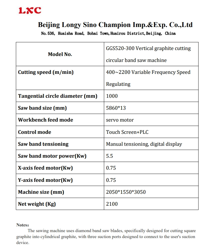 GGS520-300 Vertical graphite cutting circular band saw machine