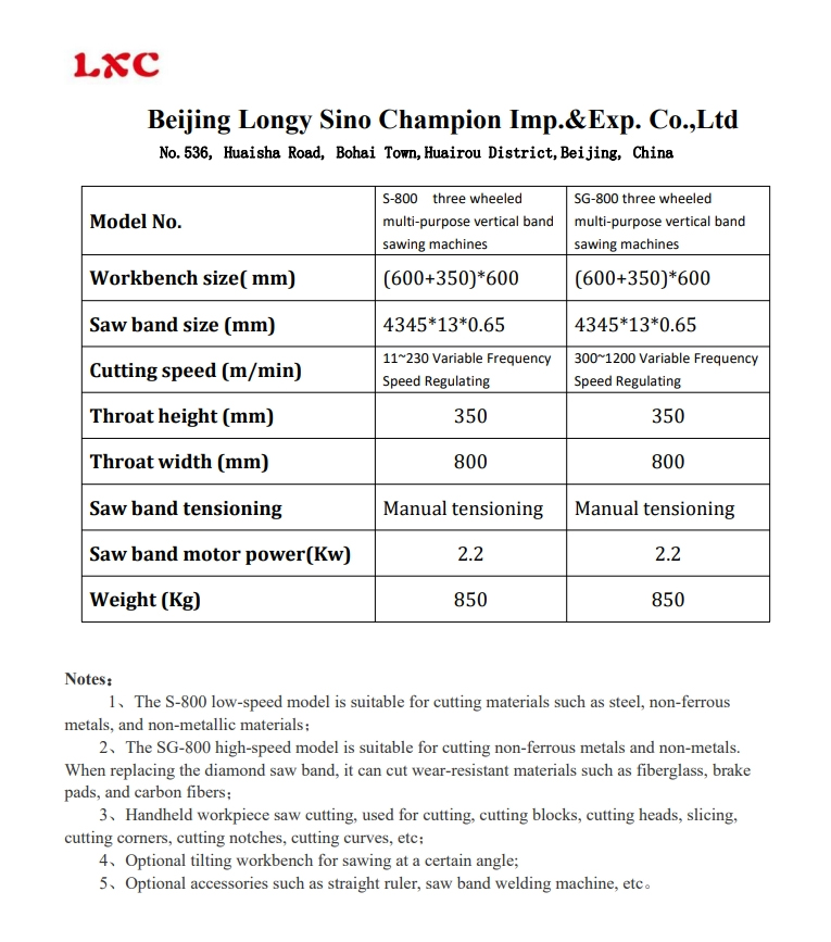 S-800 and SG-800 three wheeled multi-purpose vertical band sawing machines