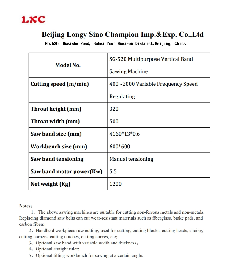 SG-520 Multipurpose Vertical Band Sawing Machine