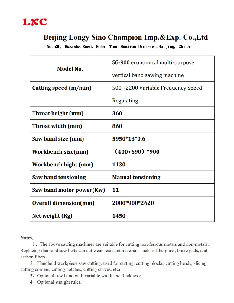 SG-900 economical multi-purpose vertical band sawing machine