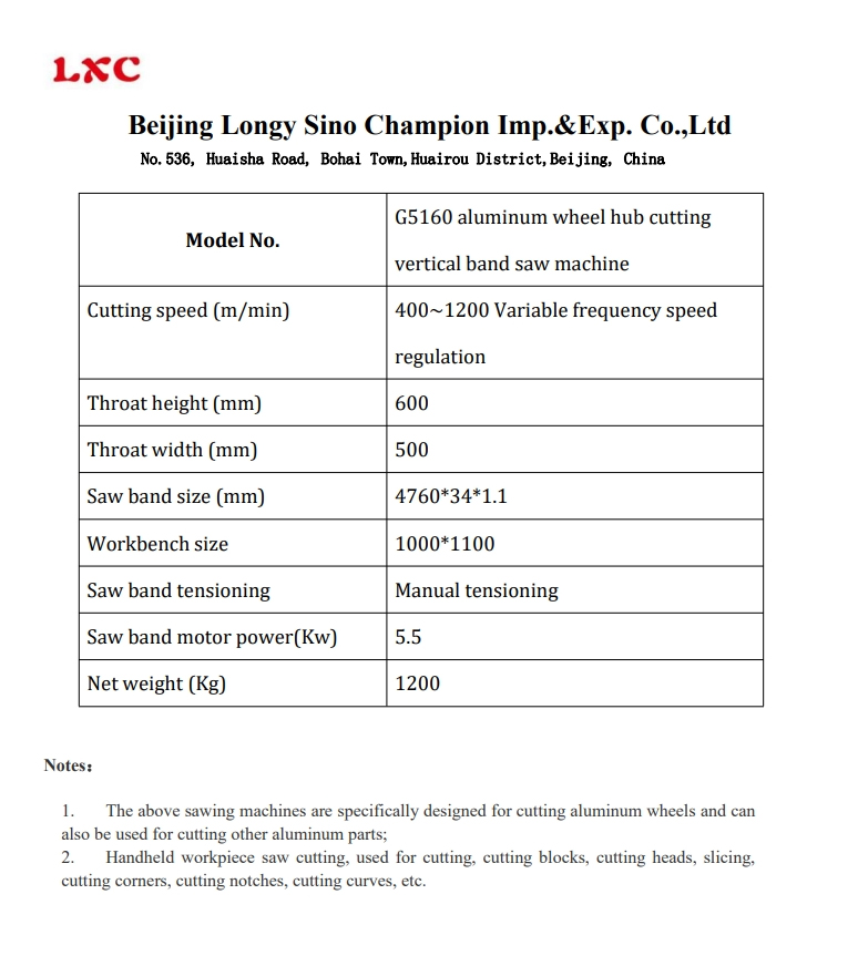 G5160 aluminum wheel hub cutting vertical band saw machine